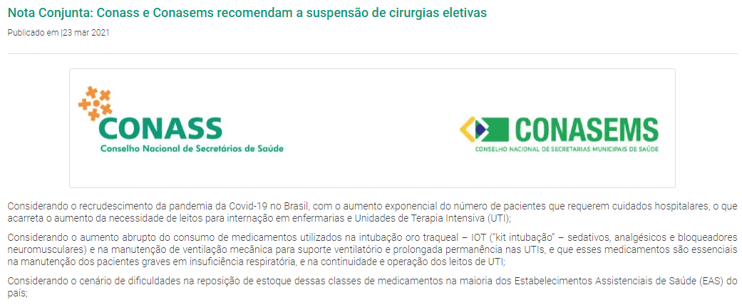 Read MoreOs Conselhos Nacionais das Secretarias de Saúde (Conass) e o das Secretarias Municipais de Saúde (Conasems) publicaram uma nota conjunta