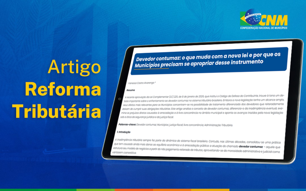 A Associação Rondoniense de Municípios (AROM) informa aos gestores municipais que o portal da Confederação Nacional de Municípios (CNM) disponibilizou um novo artigo técnico que analisa os impactos da Lei Complementar nº 225/2026, que institui o Código de Defesa do Contribuinte, especialmente no enfrentamento ao chamado devedor contumaz.